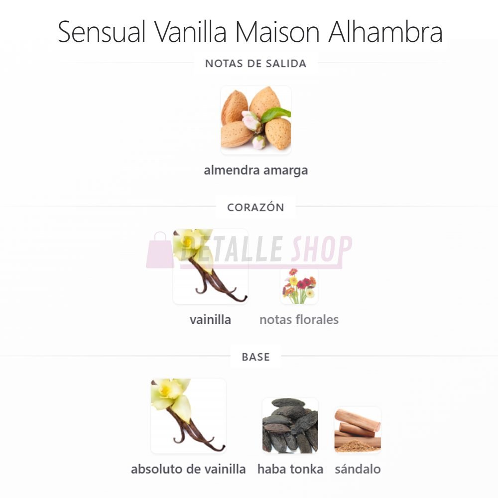 Sensual Vanilla de Maison Alhambra: la esencia del lujo árabe. Un perfume unisex e intenso donde la dulzura de la vainilla se funde con el carácter de la almendra y la calidez del sándalo. Sofisticación pura en cada gota. ¡Hazlo tuyo!