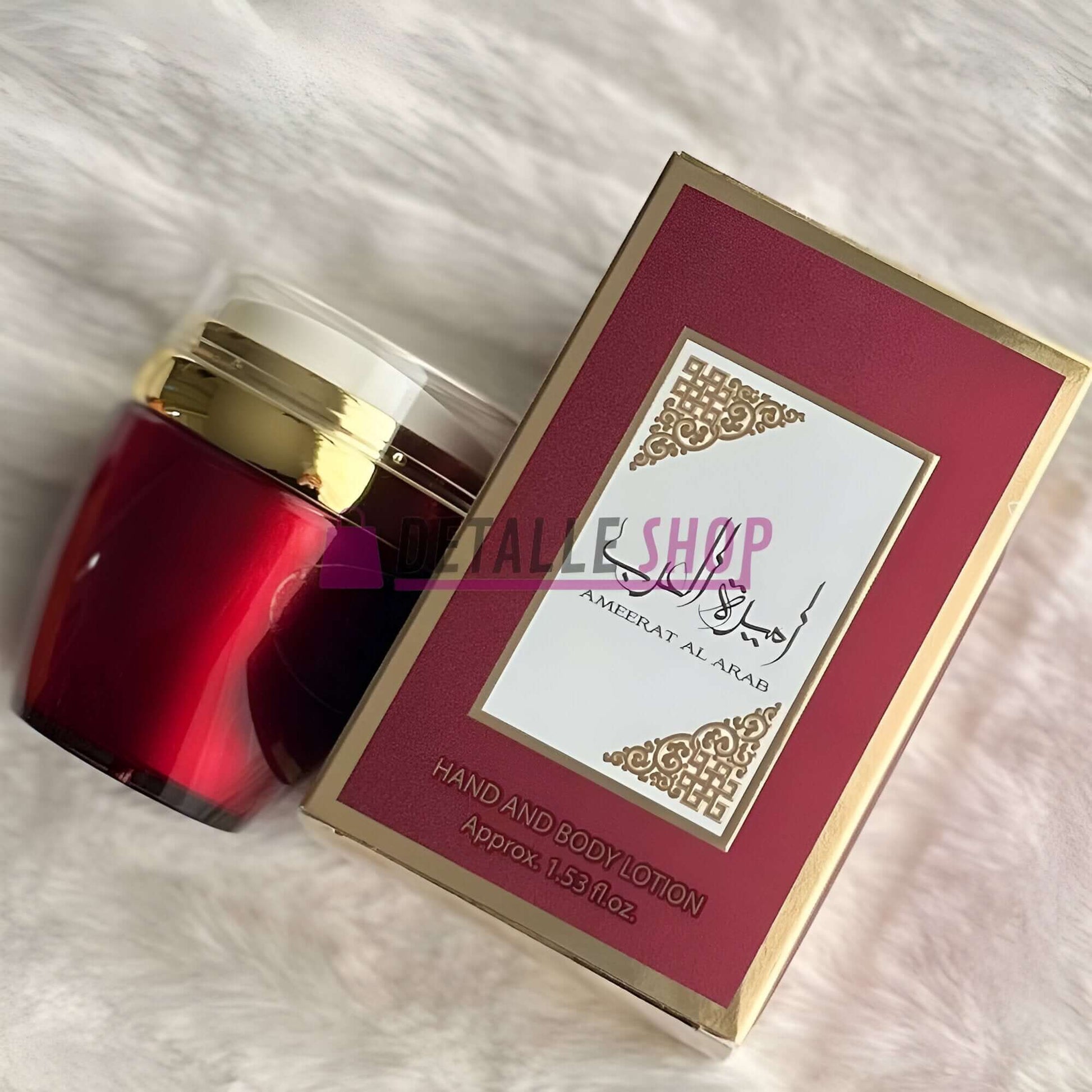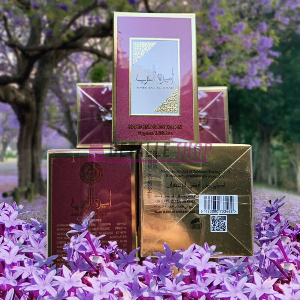 Descubre la loción Ameerat Al Arab de Ard Al Zaafaran, la crema perfecta para cuerpo y manos. Con el irresistible aroma de la fragancia Ameerat Al Arab, esta loción hidrata profundamente, dejando tu piel suave, radiante y deliciosamente perfumada.