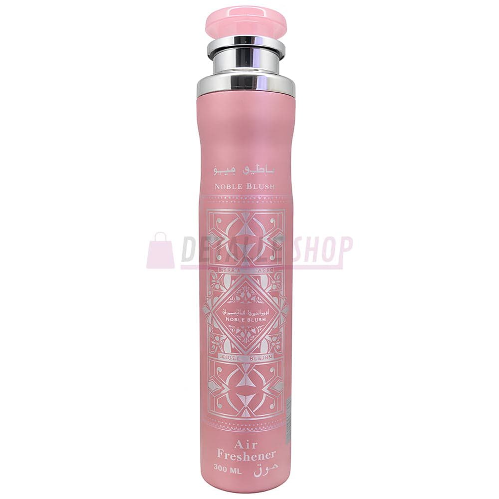 Ambientador de hogar Noble Blush de Lattafa, perfume elegante con notas de rose milk, almendra, merengue, vainilla, sándalo y almizcle. Olor intenso y duradero que no mancha tejidos. Perfuma tu hogar con un aroma sofisticado y acogedor.