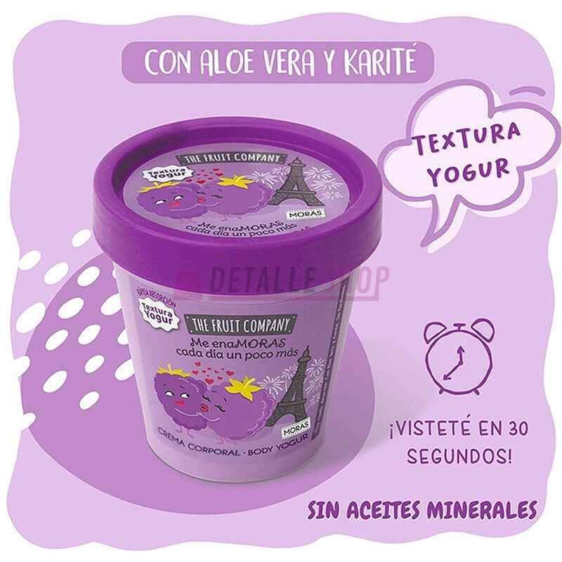 Es una crema corporal hidratante con textura de yogur de moras que nutre y repara la piel intensamente potenciando su belleza. Dejará tu piel suave e hidratada y con un delicioso aroma a moras al que nadie se podrá resistir. De rápida absorción, ¡vístete en 30 segundos!