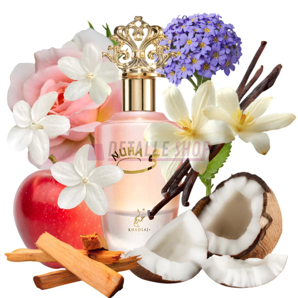 Nuha de Khadlaj es un perfume elegante y envolvente, con notas florales, especiadas y amaderadas. Sofisticado y duradero, perfecto para destacar con estilo y dejar una huella inolvidable.